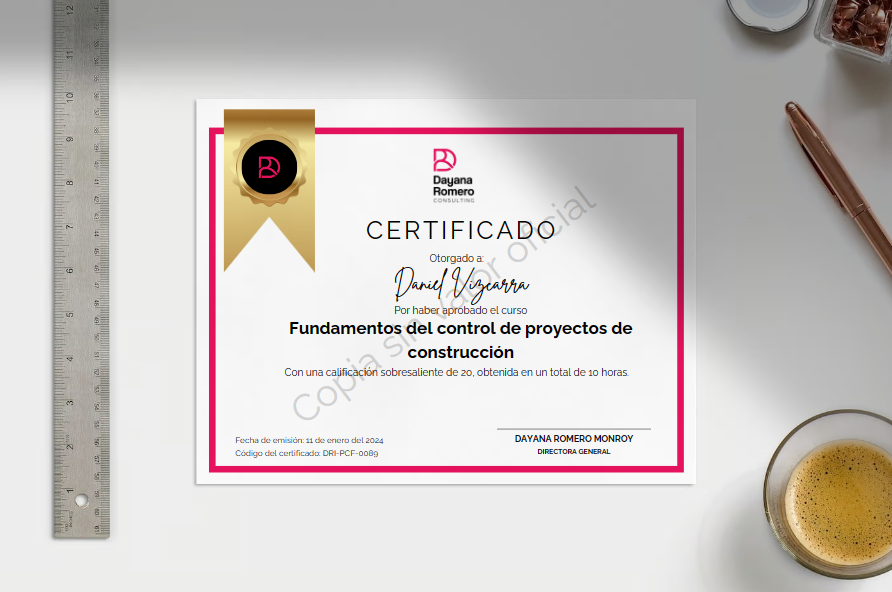 Quiero compartir mi experiencia sobre un excelente curso que realicé en Dayana Romero Institute & Consulting. Este curso resultó ser un recurso invaluable para fortalecer mis conocimientos en estimaciones, control de costos, gestión de cambios, planificación, programación, gestión de riesgos, seguimiento del progreso y elaboración de informes, todo ello en consonancia con estándares y marcos reconocidos como AACE, APM y PMI. Recomiendo altamente este curso a cualquiera que busque desarrollar y mejorar sus habilidades en control de proyectos."